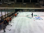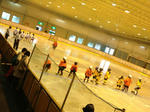 小さい選手達が、基本的なスケーティング、エッジの使い方や、ハンドリングを学びます。